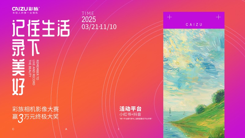 为进一步赋能年轻用户创作,彩族积极构建青年影像文化生态,通过举办影像大赛、开展用户作品征集、分享创作教程等多种形式,为Z世代提供展示自我的平台,鼓励年轻人用镜头表达自我,摆脱手机摄影的算法束缚,传递“真实记录、自由创作”的影像态度。